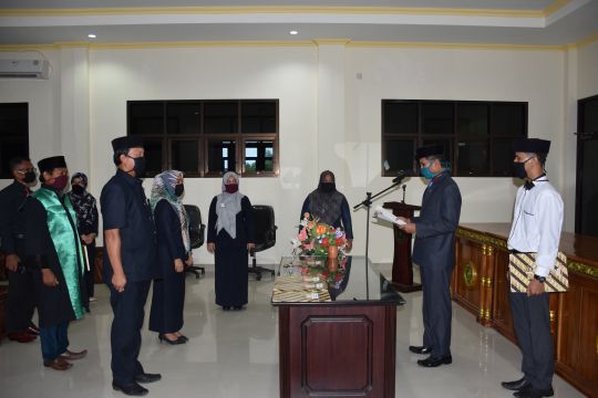 Hingga kini wabah Covid-19 belum menunjukkan kabar menggembirakan. Meski demikian, Ketua Pengadilan Agama (PA) tetap melakukan pelantikan dan pengambilan sumpah jabatan terhadap 2 pejabat kesekretariatan. Untuk tetap waspada, dan sebagai dukungan atas upaya pemerintah dan Mahkamah Agung (MA), prosesi acara diwarnai dengan penggunaan masker.